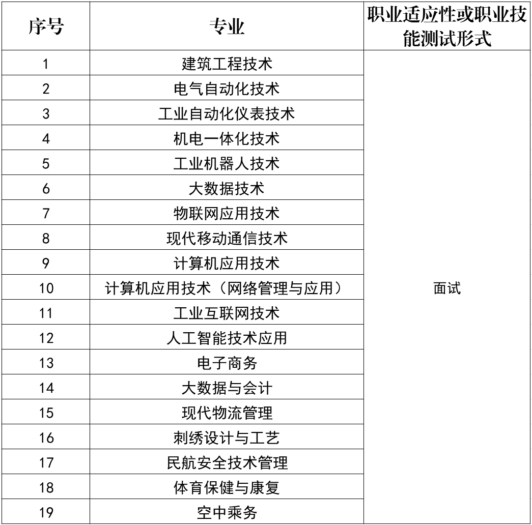 (一)有高中学业水平考试成绩的考生(含普通类、对口类考生当年或往年成绩),无需参加文化素质笔试,仅参加我校组织的职业适应性测试。